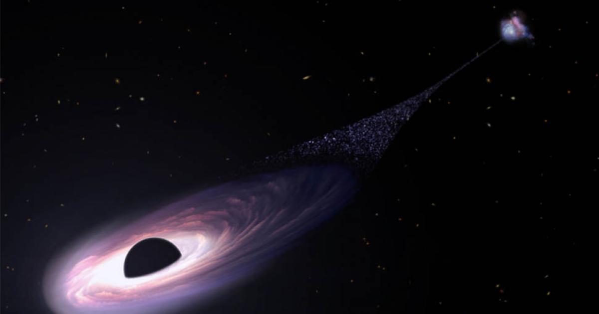 Μια υπερμεγέθη μαύρη τρύπα που τρέχει μακριά από τον γαλαξία της με ταχύτητα περίπου 4 εκατομμυρίων μιλίων την ώρα, τόσο γρήγορα που θα μπορούσε να ταξιδέψει από τη Γη στη Σελήνη σε μόλις 14 λεπτά, εντόπισαν αστρονόμοι, με επικεφαλής το Πανεπιστήμιο Γέιλ.