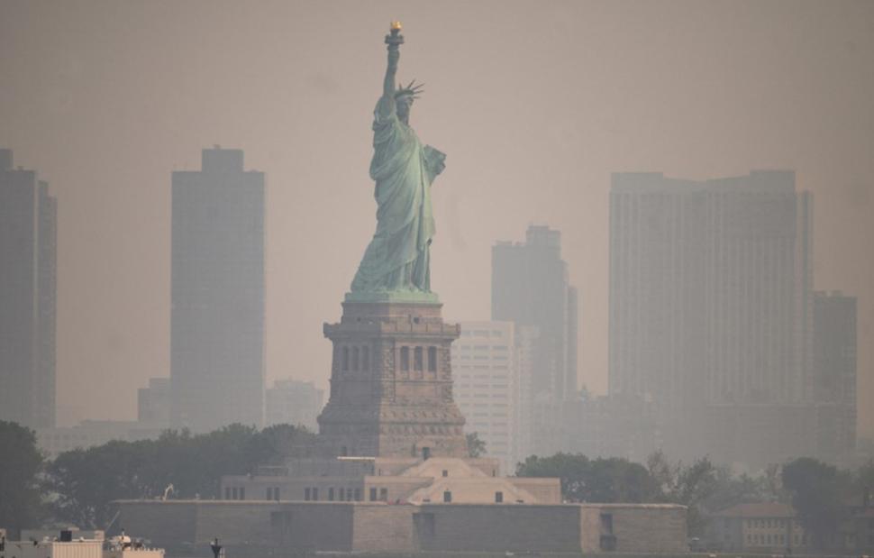 Οι εικόνες μοιάζουν από ένα δυστοπικό μέλλον, αλλά είναι εικόνες από το Άγαλμα της Ελευθερίας στη Νέα Υόρκη που πνίγεται στην αιθαλομίχλη, όπως πολλές ακόμα αμερικανικές πόλεις από την Ουάσιγκτον μέχρι τη Βοστώνη.