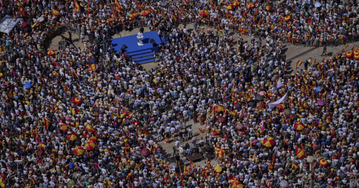 “Η κυβέρνηση αυτή τα βρώμισε όλα – την πολιτική, τους κρατικούς θεσμούς, τη διάκριση των εξουσιών”, είπε κατά τη συγκέντρωση προτού καλέσει τον Πέδρο Σάντσεθ να “υποταχθεί στη δημοκρατία” και να προκηρύξει πρόωρες εκλογές.