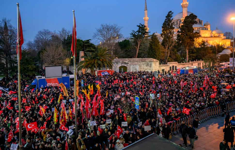 Χιλιάδες πολίτες κατέβηκαν το βράδυ της Τετάρτης στους δρόμους στο κέντρο της Κωνσταντινούπολης για να διαδηλώσουν υπέρ του δημάρχου Εκρέμ Ιμάμογλου, ο οποίος συνελήφθη το πρωί μαζί με πάνω από 100 ανθρώπους.