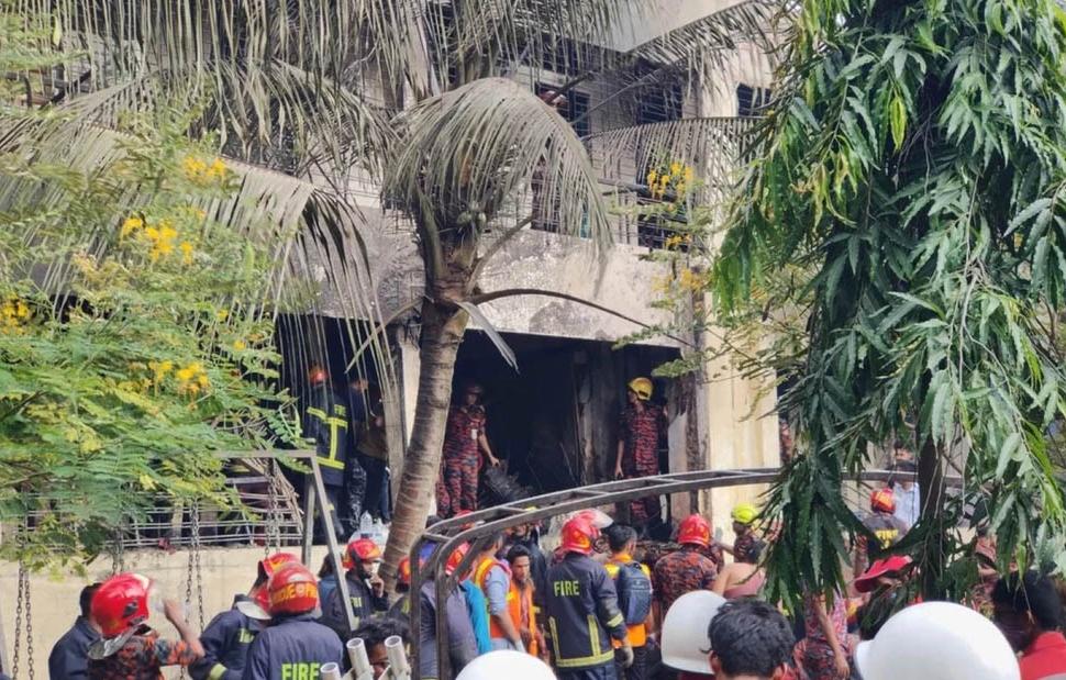 Πολλοί μαθητές στο κτίριο όπου συνετρίβη το μαχητικό υπέστησαν πολύ σοβαρά εγκαύματα και εισήχθησαν στο τμήμα επειγόντων περιστατικών εθνικού ινστιτούτου για εγκαυματίες στη Ντάκα.