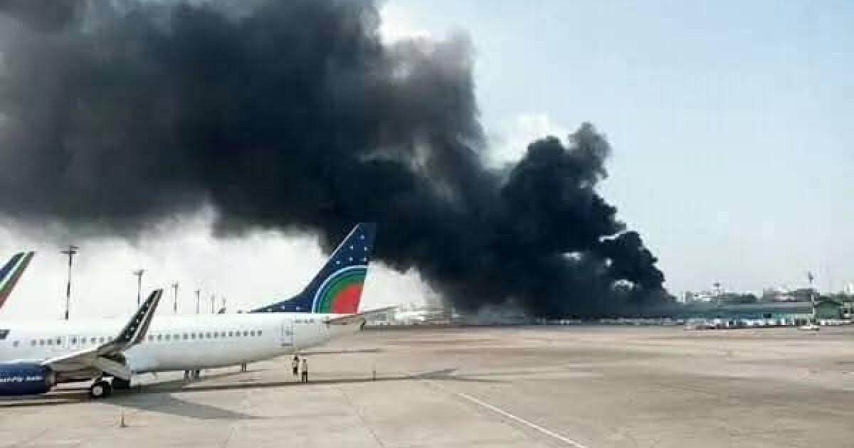 ঢাকা এয়ারপোর্টে স্কাই ক্যাপিটাল এয়ারলাইন্সে ভয়াভহ আগুন লাগার ঘটনা ঘটেছে।#Dhaka #Bangladesh pic.twitter.com/SkSVRjvubs