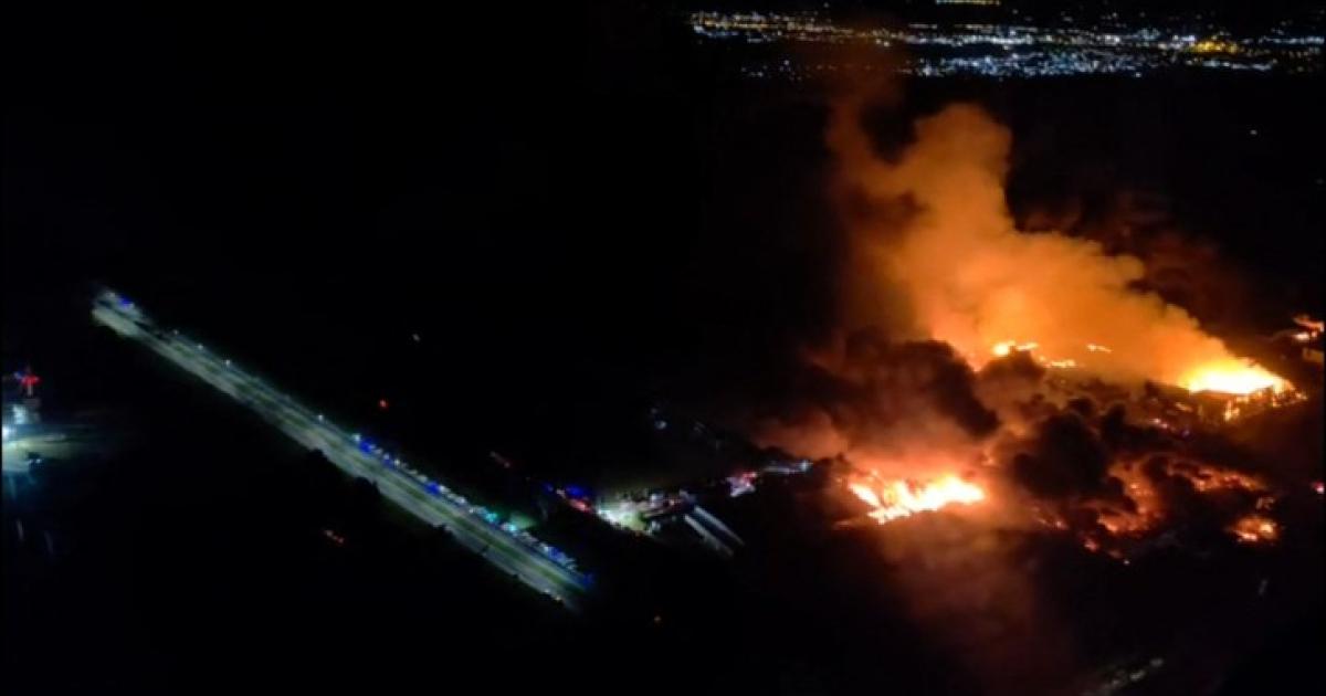 Σε πλάνα από το βιομηχανικό πάρκο Spegazzini αποτυπώνεται η έκταση της καταστροφής στην περιοχή, όπου έχουν σπεύσει ισχυρές δυνάμεις της Πυροσβεστικής και ασθενοφόρα.