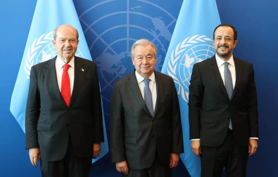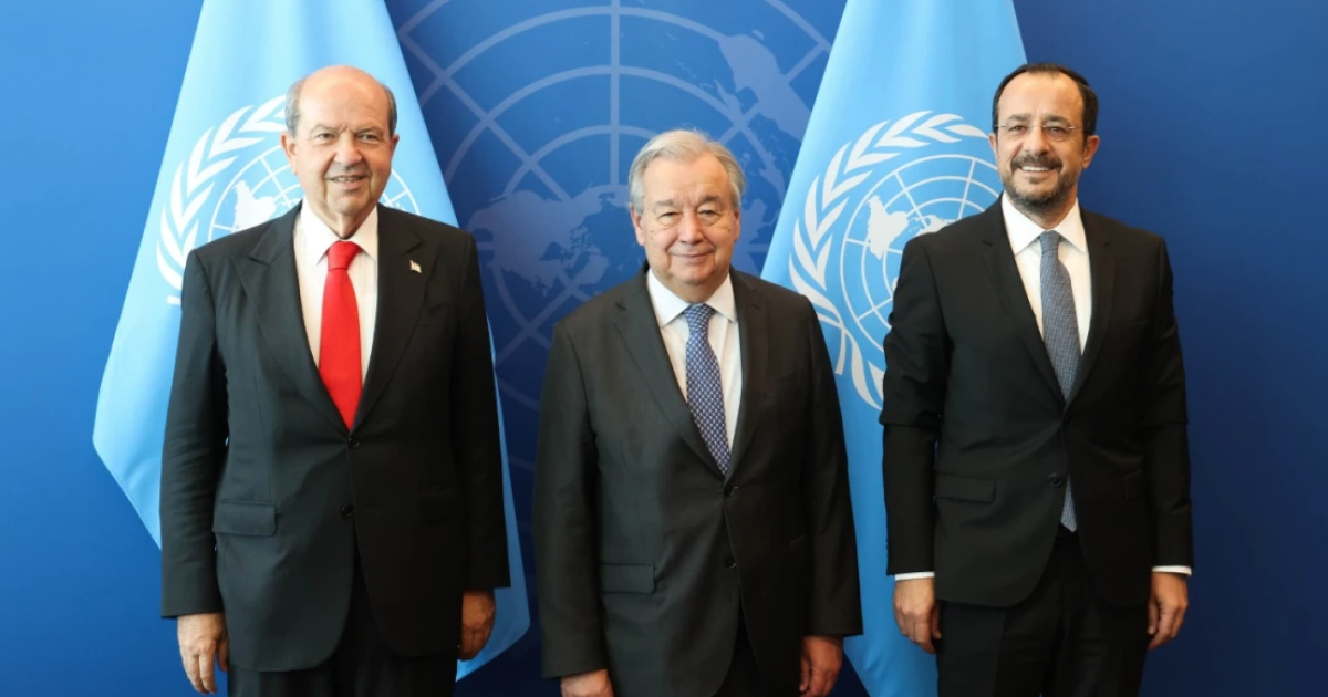 Το μήνυμα ότι ο στόχος είναι να επαναρχίσουν οι διαπραγματεύσεις για το Κυπριακό από εκεί που σταμάτησαν στο Κραν Μοντανά μετέφερε ο ΓΓ του ΟΗΕ Αντόνιο Γκουτέρες στους δύο ηγέτες – τον Πρόεδρο της Κυπριακής Δημοκρατίας και τον Τουρκοκύπριο ηγέτη – κατά την συνάντηση που είχαν το Σάββατο στην έδρα των Ηνωμένων Εθνών, όπως δήλωσε ο Πρόεδρος Χριστοδουλίδης μετά το πέρας της συνάντησης.