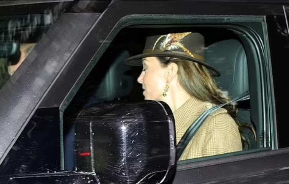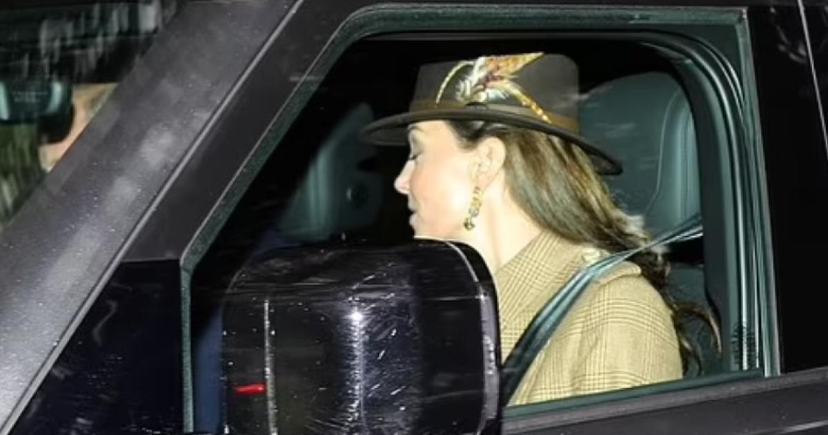 Η Κέιτ Μίντλετον απαθανατίστηκε στο αυτοκίνητο στη θέση του συνοδηγού με οδηγό τον σύζυγό της πρίγκιπα Ουίλιαμ και στο πίσω κάθισμα τον πρίγκιπα Τζορτζ, στο δρόμο για τη λειτουργία της Κυριακής.