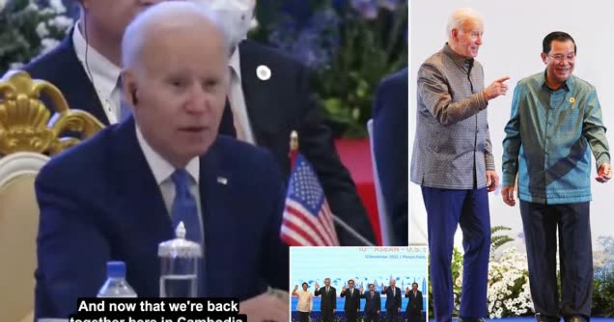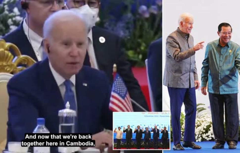 Ο Μπάιντεν πήρε το λόγο μόλις λίγα δευτερόλεπτα μετά τον πρωθυπουργό Χουν Σεν, ο οποίος κυβερνά τη χώρα εδώ και 37 χρόνια, εκφωνόντας το κείμενο με την ομιλία του που αναγραφόταν σε ένα χαρτί.