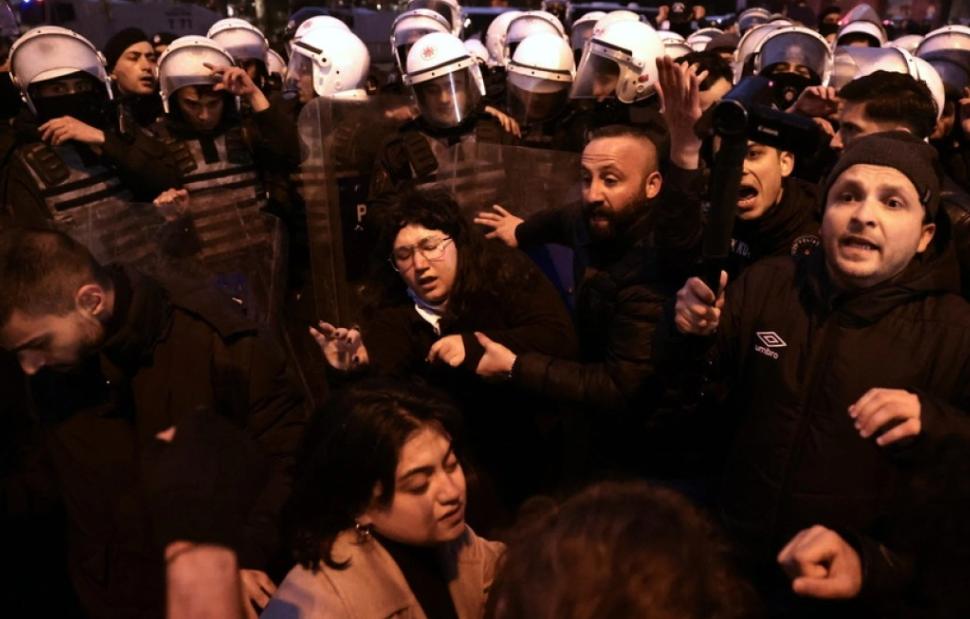 Η τουρκική αστυνομία έκανε χρήση πλαστικών σφαιρών και δακρυγόνων προς την κατεύθυνση του κόσμου που είχε συγκεντρωθεί μπροστά από το δημαρχείο, έπειτα από κάλεσμα του CHP του δημάρχου Εκρέμ Ιμάμογλου.