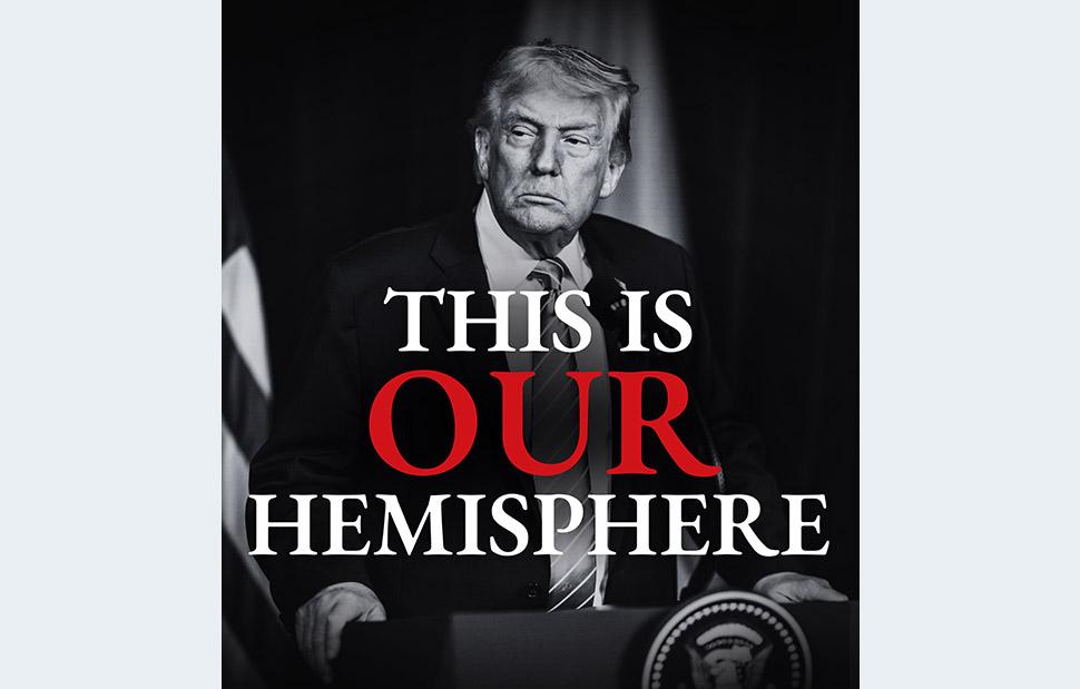Στη λεζάντα που συνοδεύει την ανάρτηση, το αμερικανικό Υπουργείο Εξωτερικών υπογραμμίζει: «Αυτό είναι ΤΟ δικό ΜΑΣ ημισφαίριο και ο πρόεδρος Τραμπ δεν θα επιτρέψει να απειληθεί η ασφάλειά μας».