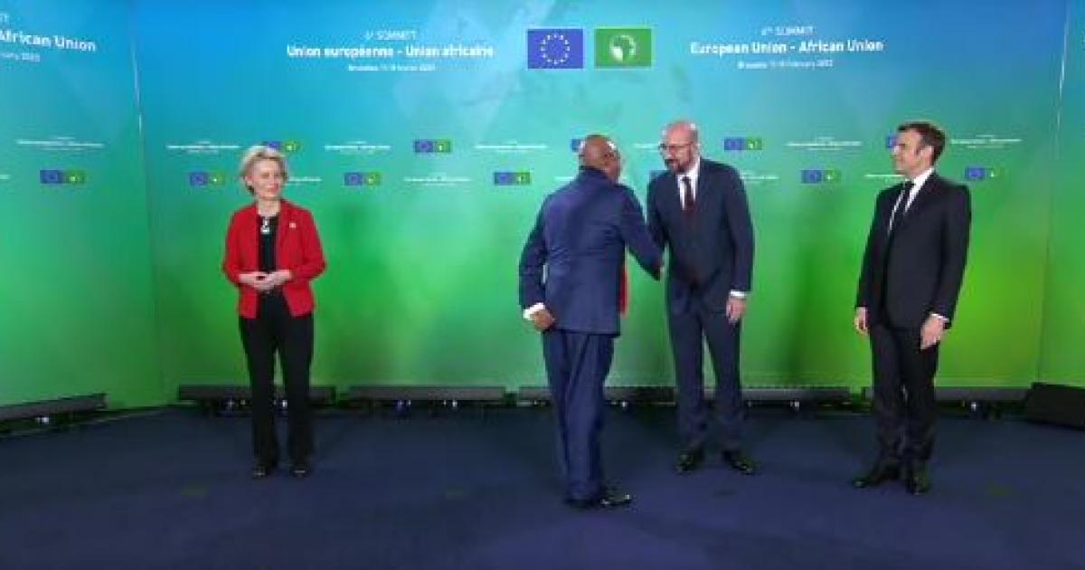 Μετά την 6η Σύνοδο Kορυφής ΕΕ-Αφρικανικής Ένωσης, ο υπουργός Εξωτερικών της Ουγκάντα, Jeje Odongo, πήγε σε ένα ειδικό σημείο, για να χαιρετίσει την ηγεσία της ΕΕ και να φωτογραφηθεί μαζί τους. Ωστόσο, ο Αφρικανός αγνόησε την πρόεδρο της Κομισιόν, κατευθύνθηκε αμέσως στον Σαρλ Μισέλ που βρισκόταν δίπλα της και τον χαιρέτισε, χωρίς εκείνος να διαμαρτυρηθεί ή να αντιδράσει. Στη συνέχεια ο ΥΠΕΞ Jeje Odongo, χαιρέτισε και τον Γάλλο πρόεδρο Εμανουέλ Μακρόν που στεκόταν πιο πέρα με την Φον Ντερ Λάιεν να παρακολουθεί έκπληκτη το περιστατικό.