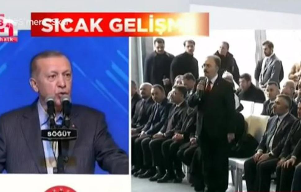 Ερντογάν: Υπάρχει ένα σημείο του δρόμου στην περιοχή Σόγιουτ. Μου είπαν πως δεν έχει ολοκληρωθεί. Δεν ξέρω πείτε μου… Πού είναι ο νομάρχης; Για πες μου πόσα χιλιόμετρα; Πες μου αυτά που έχουν απομείνει… Πάρε το μικρόφωνο.. Το μικρόφωνο.