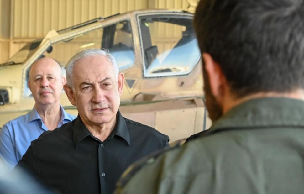 Ο πρωθυπουργός του Ισραήλ κατά τη διάρκεια της επίσκεψής του συνομίλησε με τους πιλότους μαχητικών αεροσκαφών και ελικοπτέρων και τόνισε με έμφαση ότι «δεν θα υπάρξει κατάπαυση του πυρός αν δεν επιστραφούν οι όμηροι».