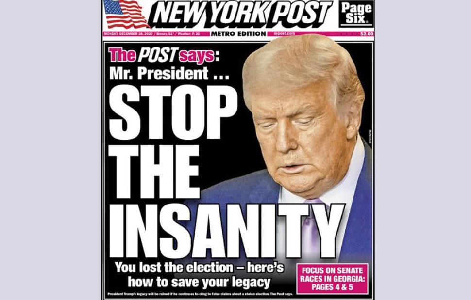 Η αμερικανική εφημερίδα είχε κρατήσει θετική στάση απέναντι στον Ρεπουμπλικανό δισεκατομμυριούχο καθ' όλη την διάρκεια της θητεία του - από το 2016 έως σήμερα. Ωστόσο, τώρα, για πρώτη φορά, του επιτίθεται δριμύτατα και τον καλεί να σταματήσει να ισχυρίζεται ότι υπήρξε εκλογική νοθεία στις εκλογές της 3ης Νοεμβρίου.