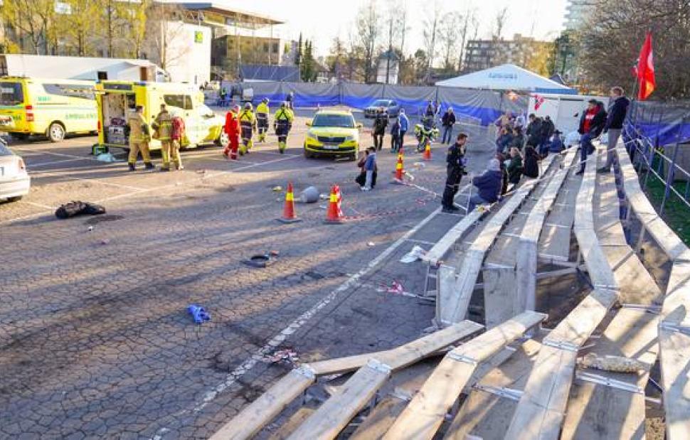 Εικόνες που δημοσίευσε το νορβηγικό NRK δείχνουν ότι δεν υπήρχαν μπάρες ασφαλείας μεταξύ των κερκίδων και του χώρου της έκθεσης. Έτσι, τίποτα δεν μπορούσε να σταματήσει το αυτοκίνητο, που προσέκρουσε στην κερκίδα με τους θεατές.