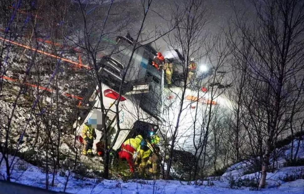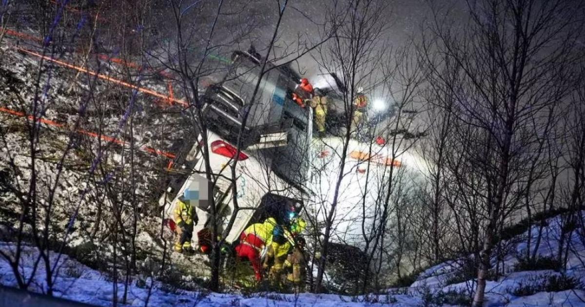 Ο Νορβηγικός Ερυθρός Σταυρός ανακοίνωσε στα μέσα κοινωνικής δικτύωσης ότι έστειλε ομάδες για να βοηθήσουν σε ένα «σοβαρό ατύχημα με λεωφορείο» στον δρόμο Ε10.