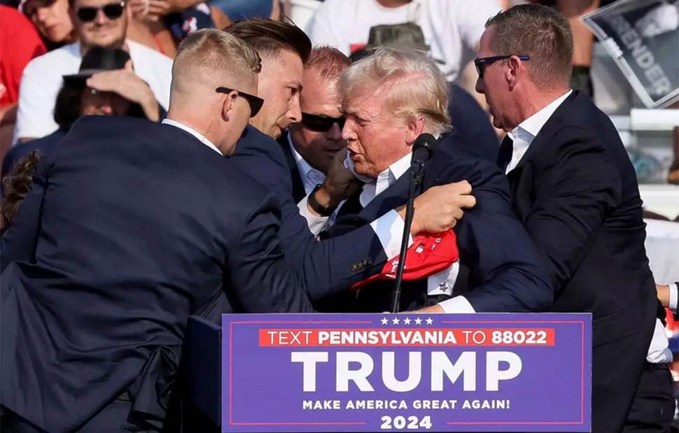 Λίγα λεπτά αργότερα, ο πρώην πρόεδρος των ΗΠΑ φυγαδεύτηκε από το σημείο ενώ αιμορραγούσε από το αυτί του.