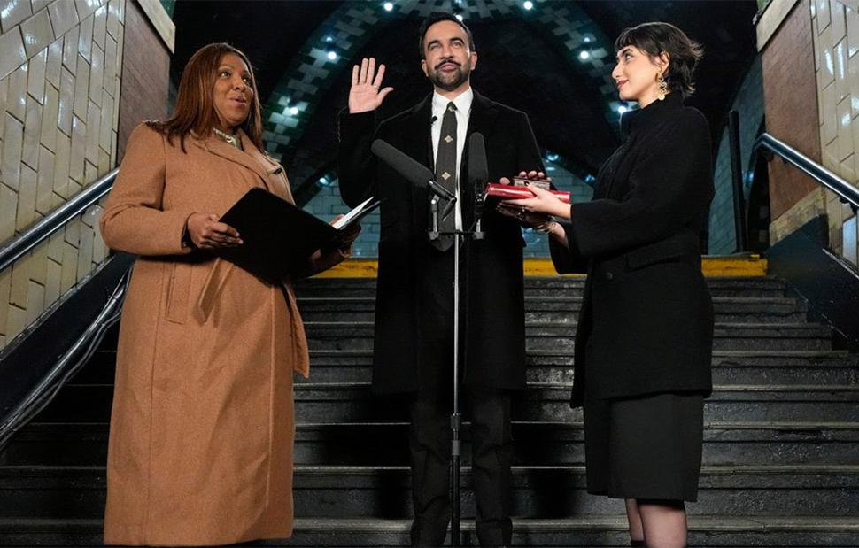 Στη διάρκεια μιας σύντομης τελετής, που πραγματοποιήθηκε σε ιστορικό σταθμό του μετρό στο Μανχάταν, ο 34χρονος Μαμντάνι ορκίστηκε ενώπιον της γενικής εισαγγελέα της Νέας Υόρκης Λετίσια Τζέιμς, εχθρό του Αμερικανού προέδρου Ντόναλντ Τραμπ και ένθερμη υποστηρίκτρια του νέου δημάρχου.