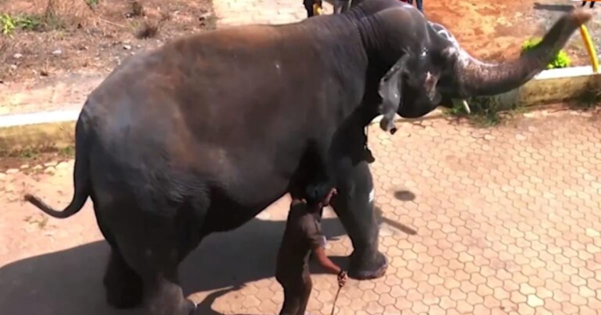 Στο βίντεο που κοινοποίησε το πρακτορείο ειδήσεων Reuters στο Τwitter φαίνεται οι πιστοί να πλησιάζουν τον ελέφαντα που ζει έξω από τον ινδουιστικό ναό Kateel Durgaparameshwari.