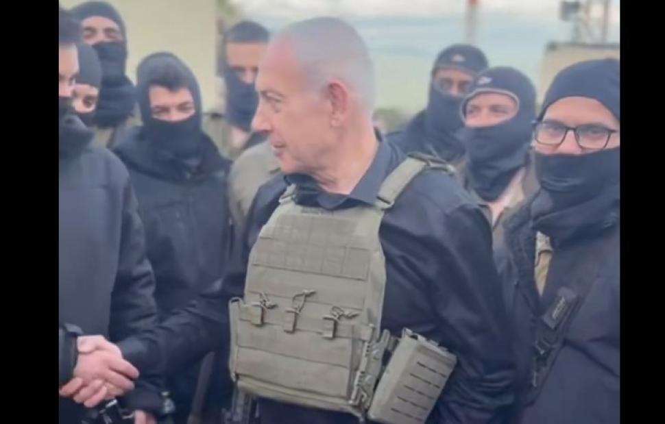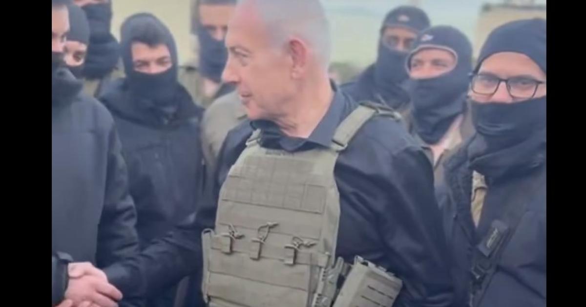 Στο βίντεο που δημοσίευσε το γραφείο του, ο Νετανιάχου εμφανίζεται να φοράει αλεξίσφαιρο γιλέκο και να περιβάλλεται από μασκοφόρους στρατιώτες.