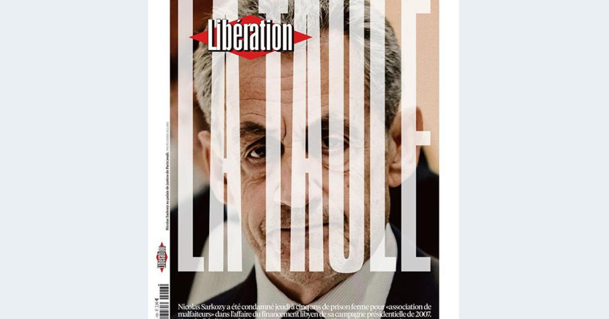 «Φυλακή. Αυτή είναι η πρώτη σελίδα της Liberation αυτή την Παρασκευή. Ο Νικολά Σαρκοζί καταδικάστηκε την Πέμπτη σε πέντε χρόνια φυλάκιση για “εγκληματική συνωμοσία” στη χρηματοδότηση της προεδρικής του εκστρατείας από τη Λιβύη το 2007. Ο πρώην αρχηγός κράτους έχει ασκήσει έφεση, αλλά θα καταλήξει στη φυλακή ούτως ή άλλως», αναγράφεται στη λεζάντα της ανάρτησης.
