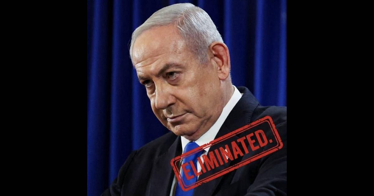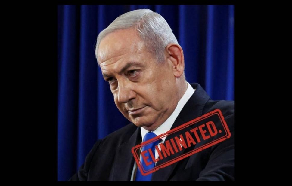 Και έχει αναρτήσει μια φωτογραφία του Ισραηλινού πρωθυπουργού όπου υπάρχει μια «σφραγίδα» που γράφει: «Εξολοθρεύτηκε».