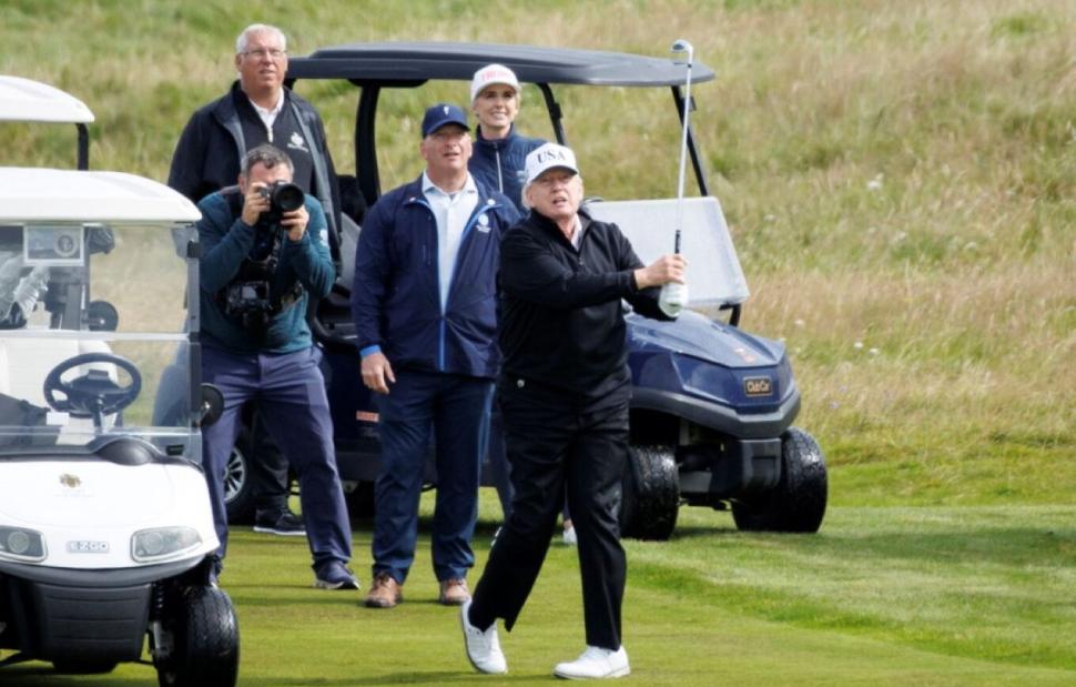 Το πρωί του Σαββάτου ακύρωσε την προγραμματισμένη συνάντηση με τους δημοσιογράφους που τον συνόδευαν στο Air Force One και προτίμησε έναν γύρο γκολφ στο παραθαλάσσιο γήπεδό του, με μουσική να παίζει δυνατά από το όχημα που οδηγούσε.