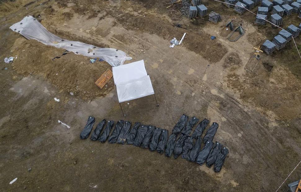Ο εντοπισμός ομαδικών τάφων και πτωμάτων αμάχων σε πόλεις και χωριά γύρω από το Κίεβο που ανακατέλαβαν οι ουκρανικές δυνάμεις αφού αποσύρθηκε ο ρωσικός στρατός προκάλεσε διεθνή κατακραυγή, ειδικά στην Μπούτσα, βορειοδυτικό προάστιο της ουκρανικής πρωτεύουσας.