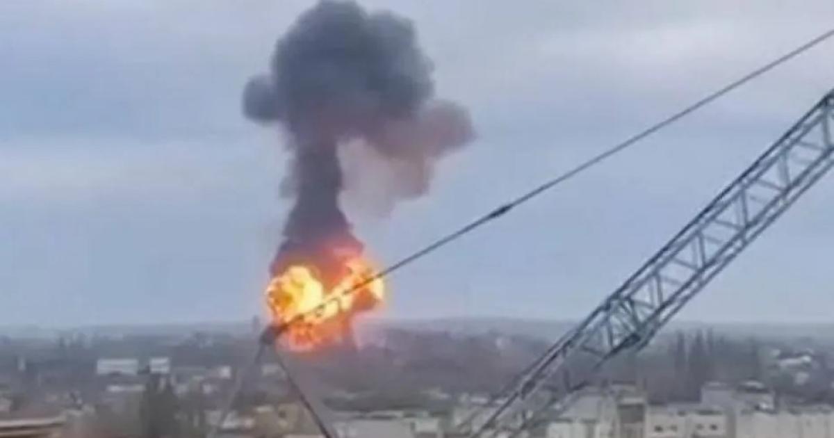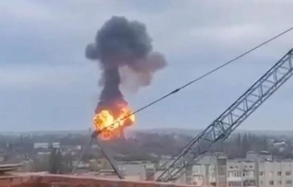 Πλάνα που αναρτήθηκαν στα μέσα κοινωνικής δικτύωσης από τον αναπληρωτή επικεφαλής του γραφείου του Ουκρανού Προέδρου έδειχναν φλόγες να βγαίνουν από μια μικρή πολυκατοικία.