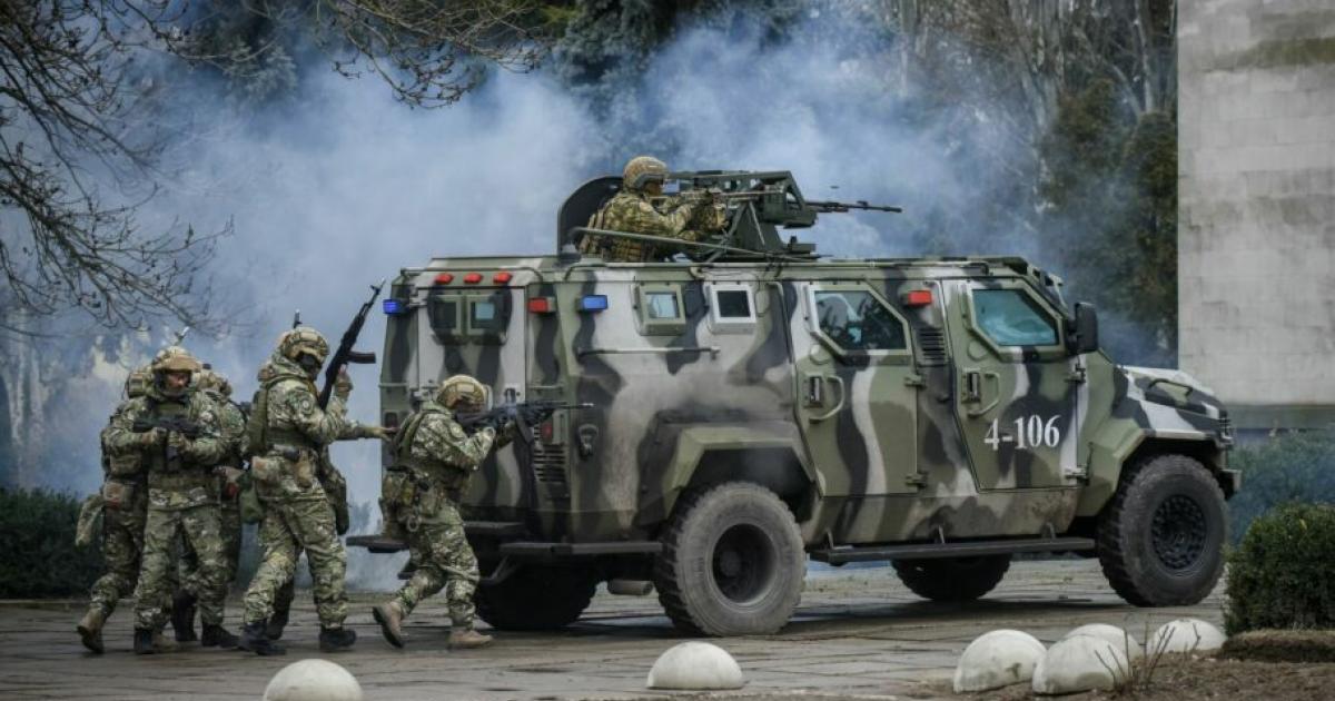 Αμέσως μετά την ανατροπή του Γιανουκόβιτς και τις πρώτες εντάσεις στη χερσόνησο της Κριμαίας ο Πούτιν θα δώσει εντολή για μεγάλης κλίμακας στρατιωτικά γυμνάσια στη νότια Ρωσία και τα σύνορα με την Ουκρανία, με τη συμμετοχή περισσότερων από 2.000 στρατιωτών. Ταυτόχρονα την εμφάνισή τους στους δρόμους της Συμφερόπολης, πρωτεύουσας της Κριμαίας, θα κάνουν και τα πρώτα ρωσικά άρματα βάζοντας έτσι τα θεμέλια για την προσάρτησής της στη ρωσική επικράτεια.