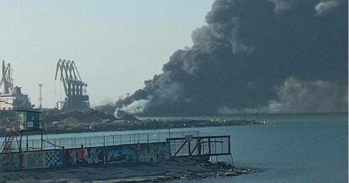 Σύμφωνα με τον Guardian, ο υψηλόβαθμος σύμβουλος του ουκρανικού υπουργείου Εσωτερικών, Αντόν Γερασένκο, ανέβασε στο Telegram μια φωτογραφία που έδειχνε πυκνούς καπνούς πάνω από λιμάνι, με τη λεζάντα «Μια αποθήκη με πυρομαχικά και πυραύλους στο κατεχόμενο από τους Ρώσους Μπερντιάνσκ».