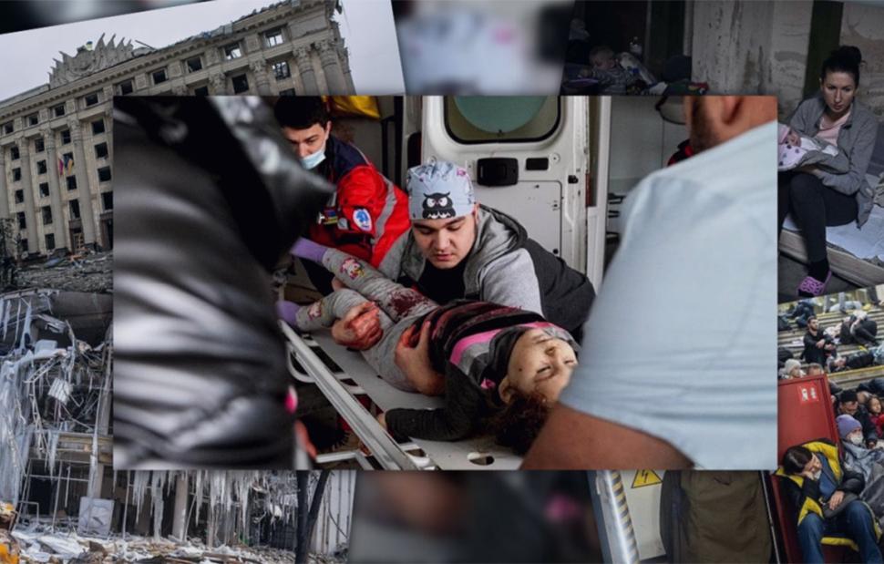 Στιγμιότυπα «γροθιά στο στομάχι» από τα διεθνή πρακτορεία ειδήσεων δημοσίευσε ο πρόεδρος της εμπόλεμης Ουκρανίας, με αμάχους νεκρούς και τραυματίες, εμβληματικά κτίρια να έχουν υποστεί ανελέητους βομβαρδισμούς και εκατομμύρια ανθρώπους να εγκαταλείπουν την πατρίδα και τη ζωή τους για να γλιτώσουν από τα ρωσικά πυρά.