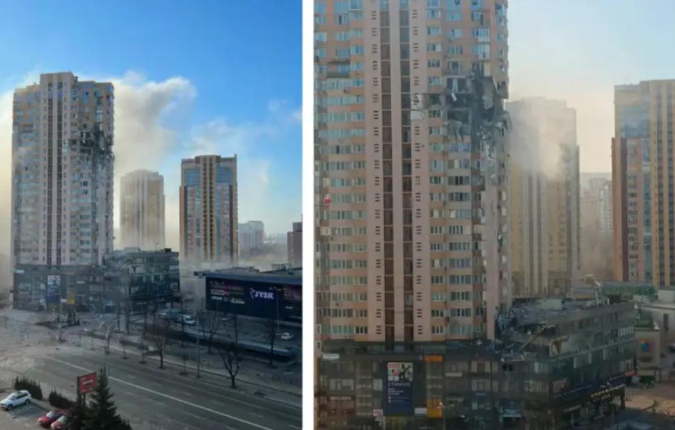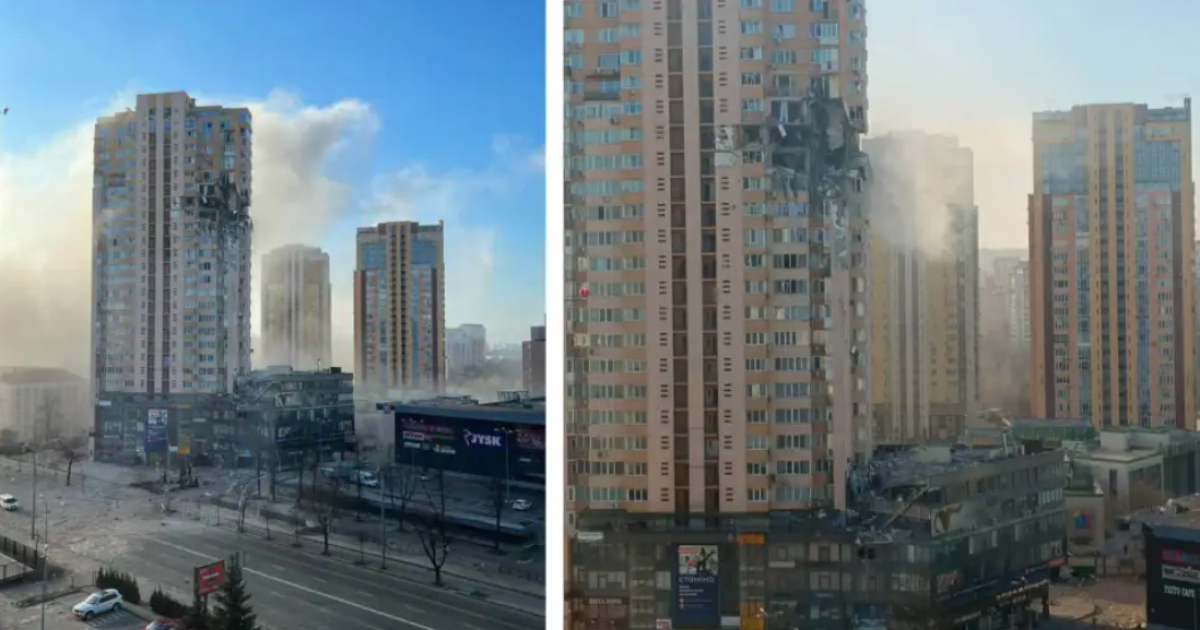 WATCH: Video shows the moment a high-rise building in Kyiv is hit by a missile pic.twitter.com/adrd6LSfIL