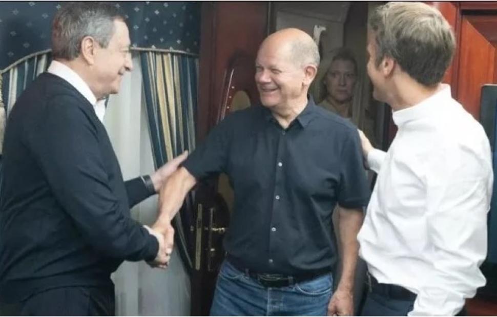 Σε ειδικό τρένο επιβιβάστηκαν ο Πρόεδρος της Γαλλίας Εμανουέλ Μακρόν, ο καγκελάριος της Γερμανίας Όλαφ Σολτς και ο Πρωθυπουργός της Ιταλίας Μάριο Ντράγκι και κατευθύνονται προς την Ουκρανία και συγκεκριμένα το Κίεβο.