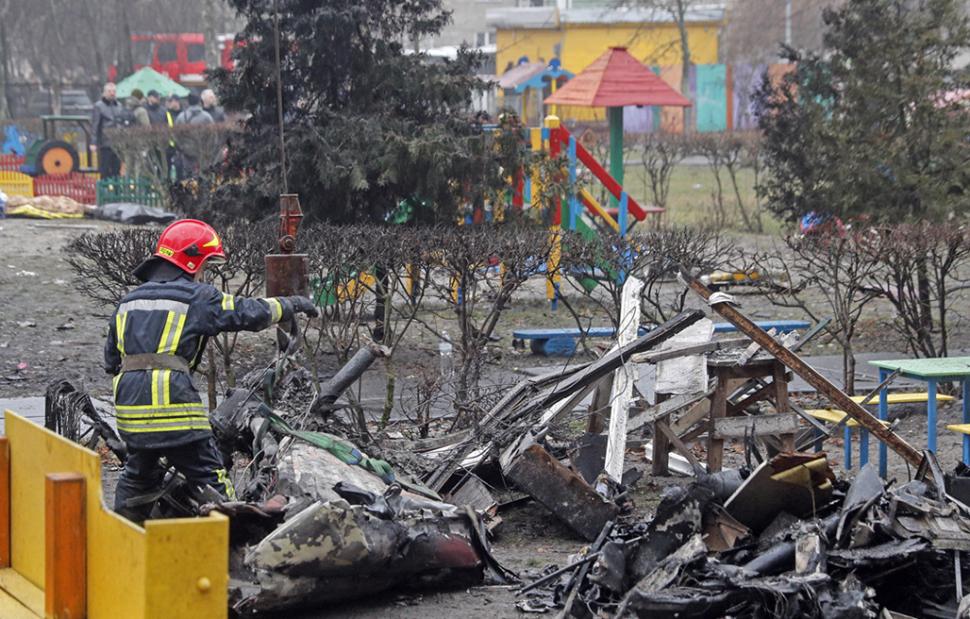Από τη συντριβή του ελικοπτέρου 14 άνθρωποι έχασαν τη ζωή τους, συμπεριλαμβανομένου ενός παιδιού, 25 άνθρωποι τραυματίστηκαν, 11 από αυτούς ήταν παιδιά. Μεταξύ των νεκρών ήταν ο υπουργός Εσωτερικών της Ουκρανίας, Ντένις Μοναστίρσκι, ο πρώτος αναπληρωτής του και ο υφυπουργός του υπουργείου Εσωτερικών.