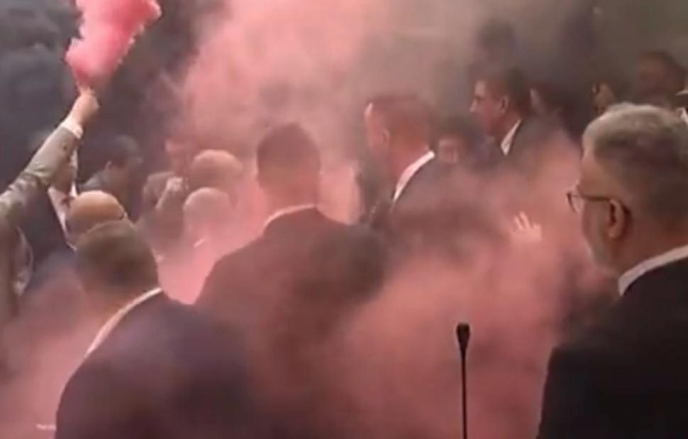 Σε πεδίο μάχης μετατράπηκε η αίθουσα συνεδριάσεων της σερβικής Bουλής. Βουλευτές της αντιπολίτευσης αντιδρώντας στην ημερήσια διάταξη που υιοθετήθηκε από την πλειοψηφία προσπάθησε να διακόψει την συνεδρίαση πετώντας καπνογόνα, ανάβοντας πυρσούς και εκσφενδονίζοντας αυγά κατά των βουλευτών της συμπολίτευσης.
