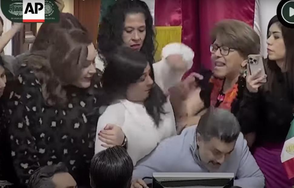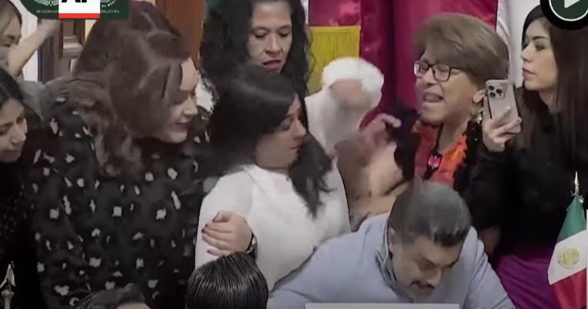 Σύμφωνα με τοπικά μέσα ενημέρωσης, η διαμάχη ξέσπασε όταν μια ομάδα γυναικών από το δεξιό Εθνικό Κόμμα Δράσης (PAN) πλησίασε το κύριο βήμα της Βουλής σε ένδειξη διαμαρτυρίας για έναν κανόνα που, όπως ισχυρίζονταν, είχε παραβιαστεί από το αριστερό κόμμα Morena, το οποίο έχει την πλειοψηφία στη Βουλή.