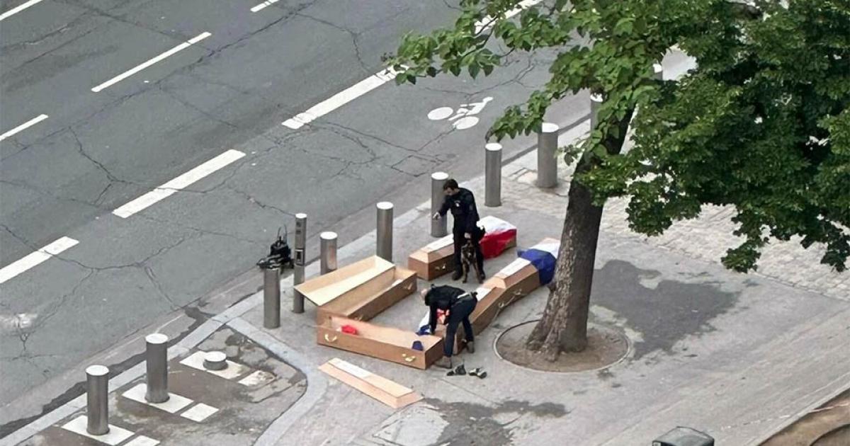 Συναγερμός σήμανε στη γαλλική αστυνομία, όταν κάποιοι τοποθέτησαν πέντε φέρετρα καλυμμένα με τη γαλλική σημαία στον Πύργο του Άιφελ, το Σαββατοκύριακο. Κάθε ένα από αυτά έφερε την επιγραφή «Γάλλοι στρατιώτες στην Ουκρανία», γεγονός που εγείρει υποψίες για ρωσική παρέμβαση.