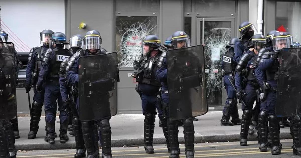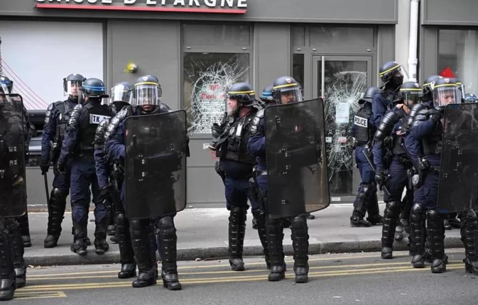 Εκατοντάδες άνθρωποι φορώντας μαύρα και κουκούλες αποχώρησαν από την κύρια πορεία πολλών χιλιάδων ανθρώπων στο Παρίσι κι έσπασαν τα τζάμια ενός υποκαταστήματος τράπεζας.