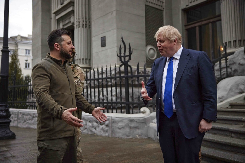 Ο πρόεδρος της Ουκρανίας Βολοντίμιρ Ζελένσκι συνομίλησε με τον πρωθυπουργό της Βρετανίας Μπόρις Τζόνσον σχετικά με μία «νέα φάση» στρατιωτικής βοήθειας, που θα περιλαμβάνει, μεταξύ άλλων, την προμήθεια βαρέων όπλων, δήλωσε σήμερα ο αναπληρωτής προσωπάρχης του προέδρου Αντρίι Σιμπίγκα.