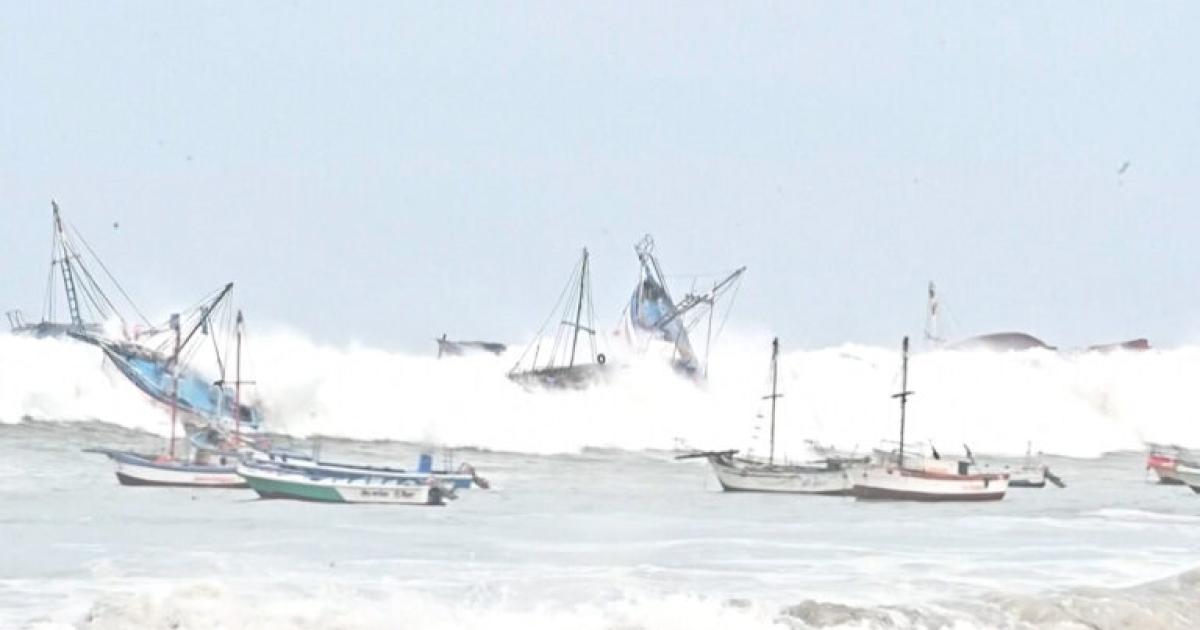 Massive waves battered the coastline of El Ñuro in Peru’s Piura region, sinking fishing boats and causing widespread damage.