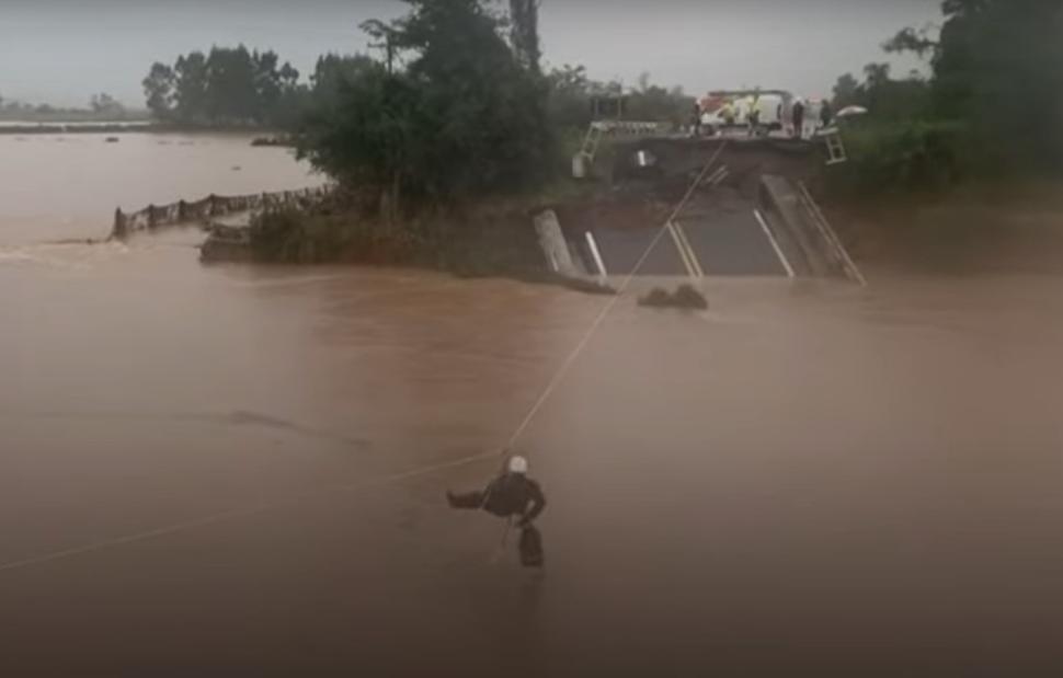 Χαρακτηριστική είναι η εικόνα από βίντεο, τη στιγμή που το νερό «καταπίνει» γέφυρα στη Σάντα Μαρία.