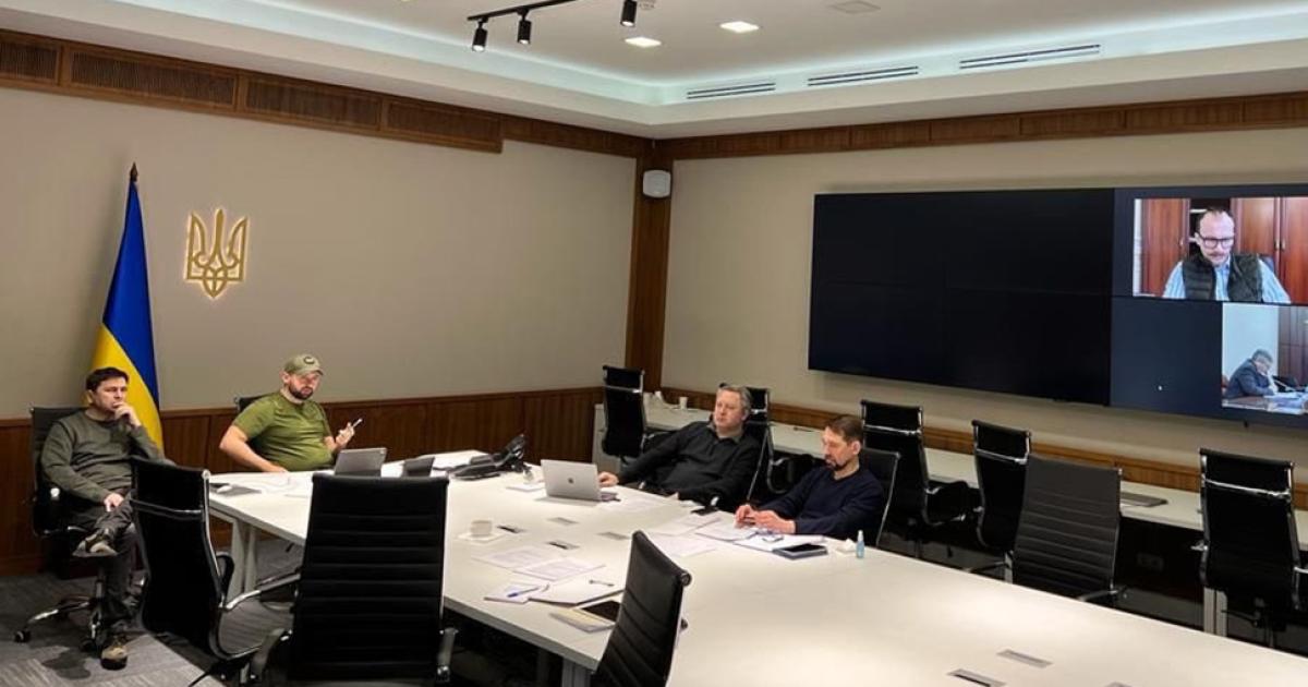 Ο Ουκρανός διαπραγματευτής, Mykhailo Podoliak, ανάρτησε μια εικόνα από τις συνομιλίες στο Twitter.