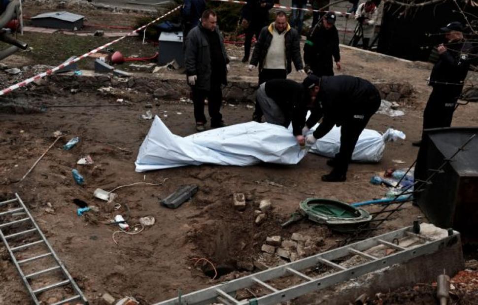 Χθες, Σάββατο, ο Τάρας Ντίντιτς, τοπικός αξιωματούχος, ανακοίνωσε μιλώντας σε ουκρανικό τηλεοπτικό σταθμό πως πτώματα αμάχων είχαν βρεθεί σε τάφρο στο Μπουζόβα.