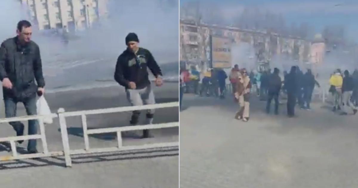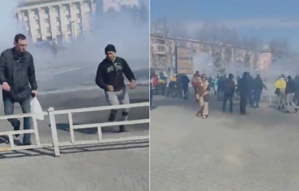 Μάλιστα, κυκλοφορεί ένα βίντεο, που φέρεται να απεικονίζει στιγμές από την επίθεση των Ρώσων κατά των διαδηλωτών στη Χερσώνα.
