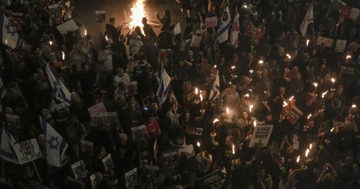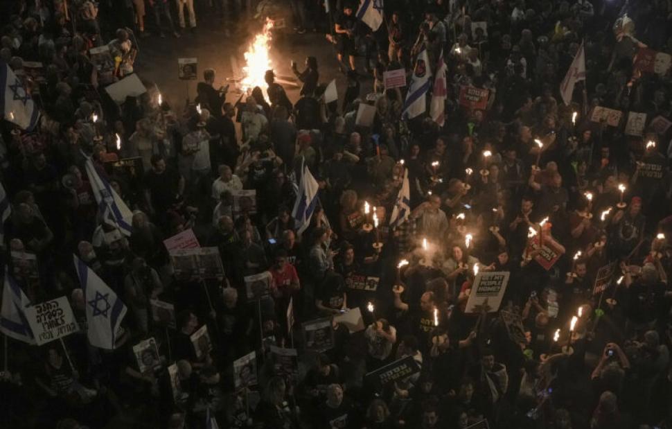 Στο Τελ Αβίβ, διαδηλωτές ζήτησαν διεξαγωγή πρόωρων εκλογών καθώς και την απελευθέρωση των ομήρων που συνεχίζει να κρατά η Χαμάς στη Γάζα.