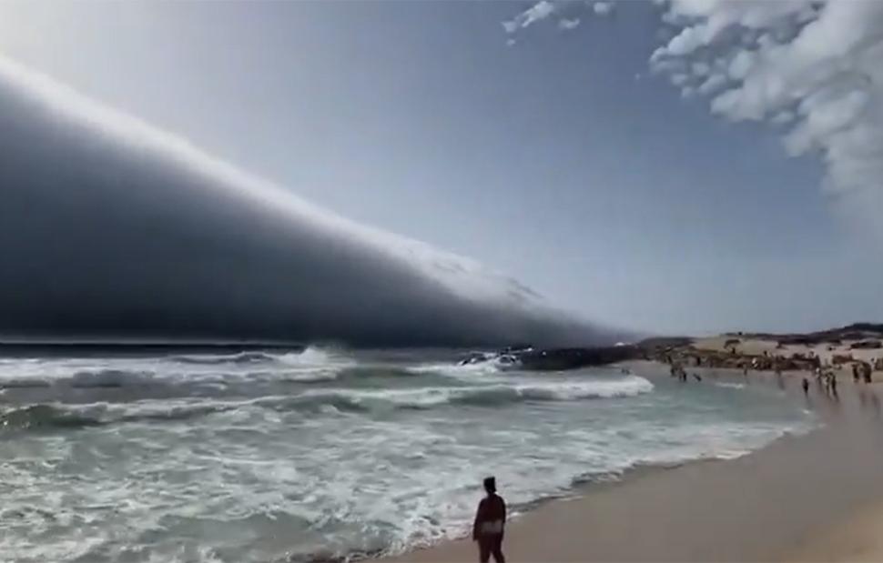 A rare atmospheric phenomenon rolled across Portugal — a giant “roll cloud” resembling a tsunami in the sky. It was spotted in three coastal cities.