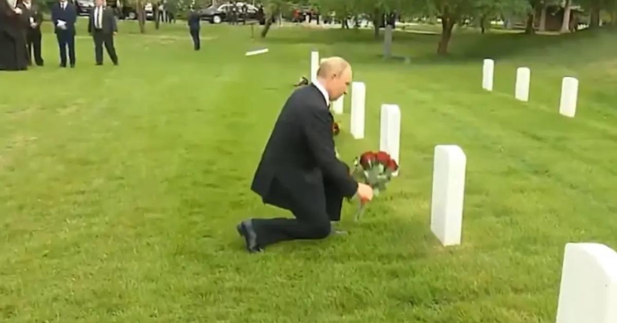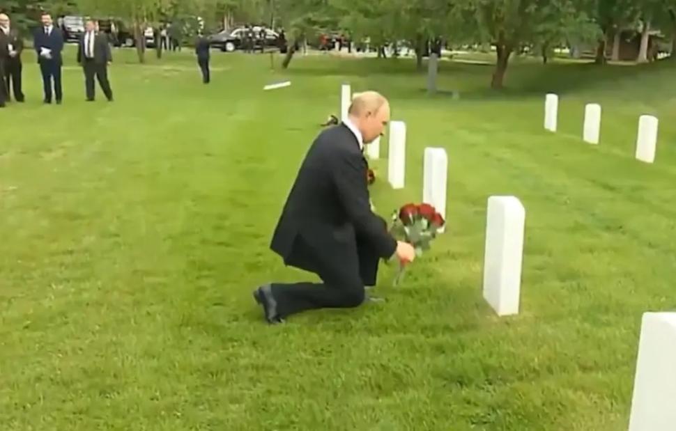 Όπως φαίνεται σε σχετικό βίντεο, ο Ρώσος πρόεδρος γονάτισε μπροστά από έναν τάφο και άφησε μερικά λουλούδια. Έπειτα έκανε τον σταυρό του και συνέχισε στον επόμενο τάφο. Ο Πούτιν είχε κάνει αναφορά στο νεκροταφείο κατά τις δηλώσεις τους, ευχαριστώντας την αμερικανική πλευρά για τη φροντίδα που δείχνει για τον χώρο.