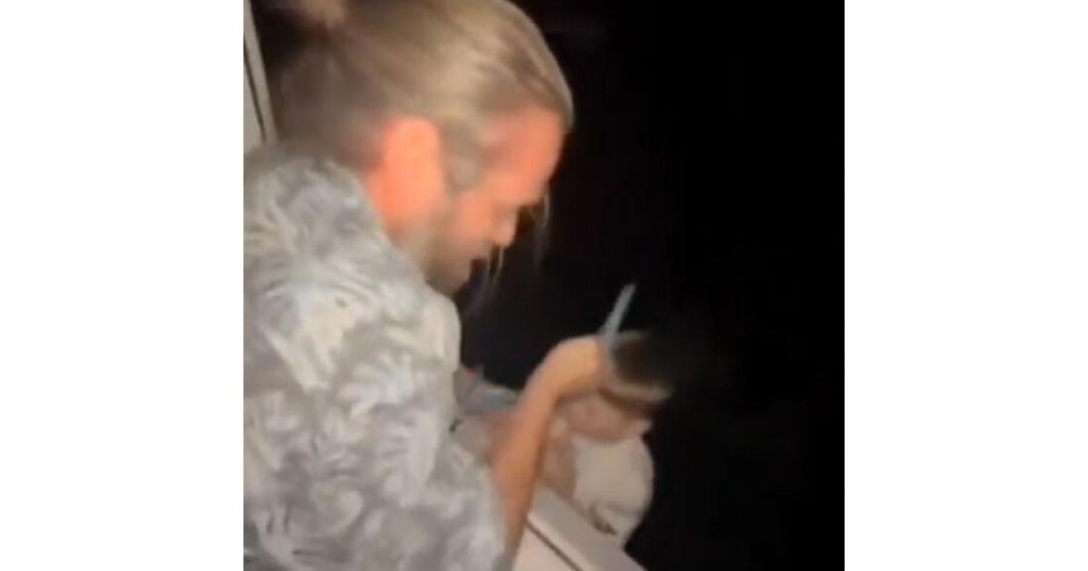Αν και η επικινδυνότητα του εγχειρήματος είναι προφανής, αυτό δεν φαίνεται να ανησυχεί τον άντρα και τους φίλους του που τραβούν το βίντεο από κινητή συσκευή, καθώς ακούγονται... να γελάνε! Τελικά, μετά από λίγα δευτερόλεπτα, ο άντρας ανεβάζει το αγόρι και το περνά ξανά μέσα στο διαμέρισμα... σα να είναι σακί, ενώ ο ίδιος σκάει στα γέλια, προφανώς ικανοποιημένος από... το κατόρθωμά του!