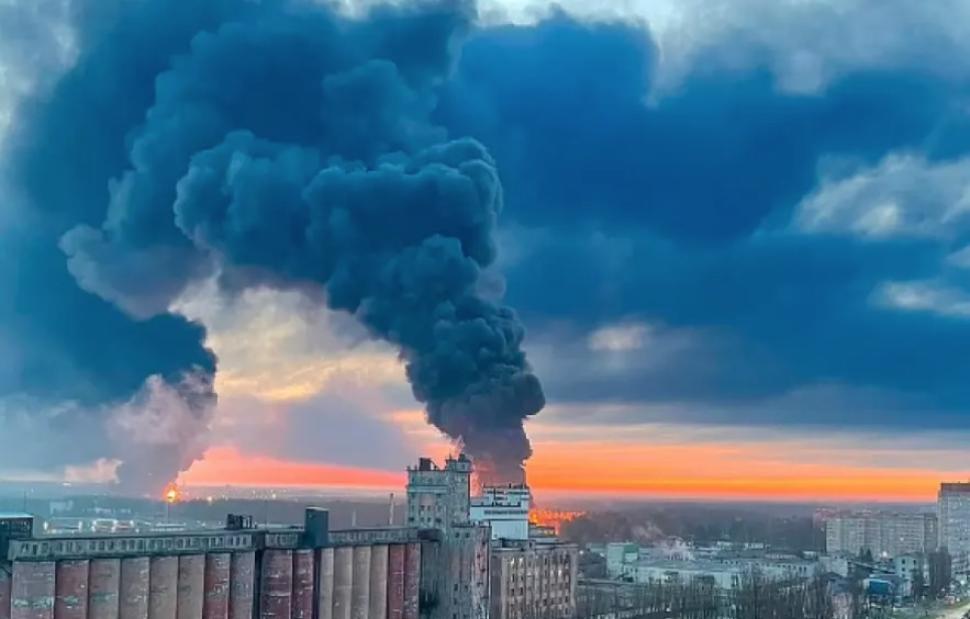 Η φωτιά ξέσπασε περίπου στις 02:00 σήμερα τα ξημερώματα στην αποθήκη καυσίμων Transneft Briansk-Droujba στην πόλη Μπριάνσκ, η οποία βρίσκεται 150 χιλιόμετρα από τα σύνορα με την Ουκρανία και χρησιμοποιείται ως επιμελητειακή βάση για τη στρατιωτική επιχείρηση της Μόσχας, σύμφωνα με το ρωσικό υπουργείο Εκτάκτων Καταστάσεων.