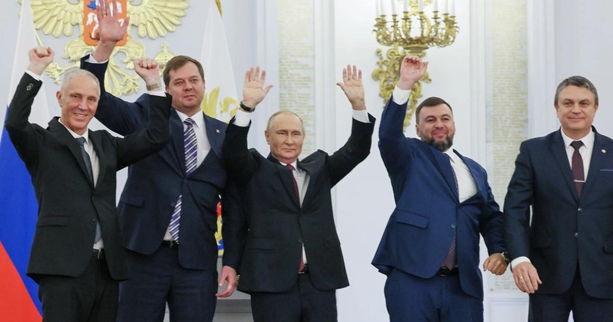 Κατά την ομιλία του από το Κρεμλίνο, ο Πρόεδρος της Ρωσίας αρνήθηκε ότι επιδιώκει την αναβίωση της Σοβιετικής Ένωσης λίγα λεπτά αφού ανακοίνωσε ότι τέσσερις περιοχές της Ουκρανίας προσαρτώνται στην Ρωσία έπειτα από «δημοψηφίσματα». Ο Βλαντιμίρ Πούτιν δήλωσε ότι η Ρωσία θα υπερασπισθεί τα νέα εδάφη με όλα τα μέσα που διαθέτει.