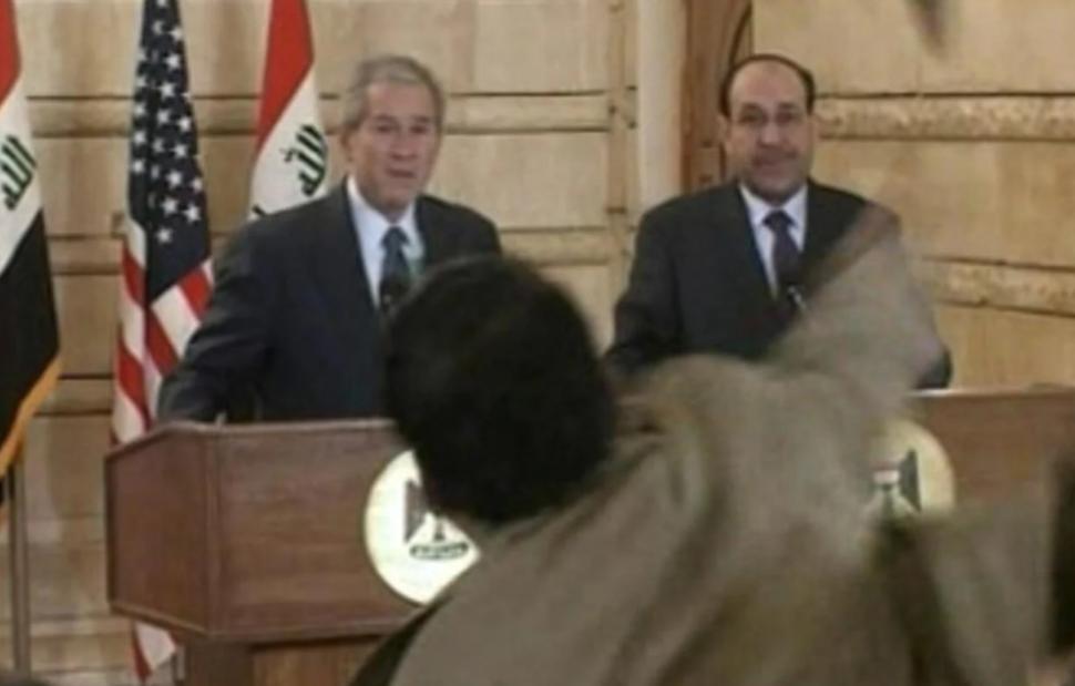 2008: Ο Τζορτζ Μπους κάνει το τελευταίο του ταξίδι ως Πρόεδρος των ΗΠΑ στο Ιράκ και σε συνέντευξη Τύπου στη Βαγδάτη ο δημοσιογράφος Μουνταντάρ αλ Ζαϊντί του πετάει δύο παπούτσια χωρίς να τον πετύχει.